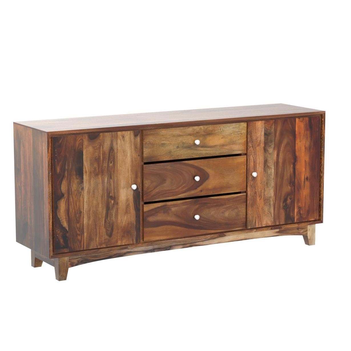 Nest Honest Solid Sheesham Wood Sideboard Tv Cabinet for Living Room | Free Standing Movable Tv Unit Side Board Table with 3 Drawer & 2 Cabinet Storage Furniture for Home | Teak Finish