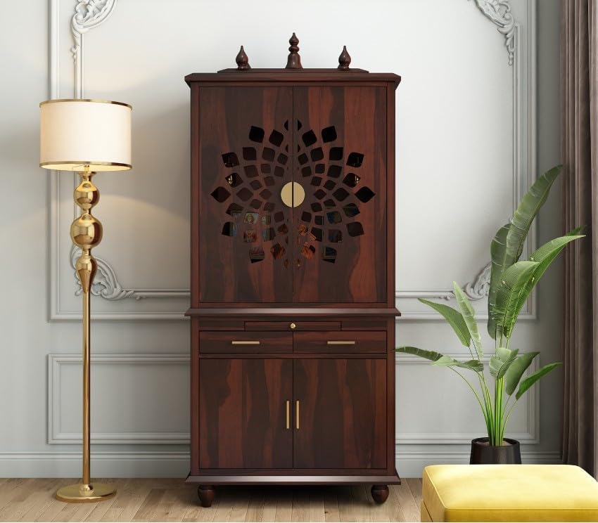 - Spacious Design: Ample storage and display space with 2 drawers and a 4-door cabinet, ideal for organizing puja essentials and decorative items.