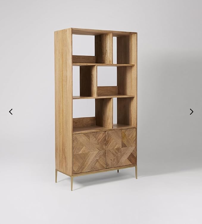 NESTHONEST Wooden Book Shelf for Living Room | Open Bookcases with 6 Shelf & 2 Doors Cabinet Storage | Display Unit for Home Furniture | Solid Wood Mango & Iron, Natural & Golden Finish